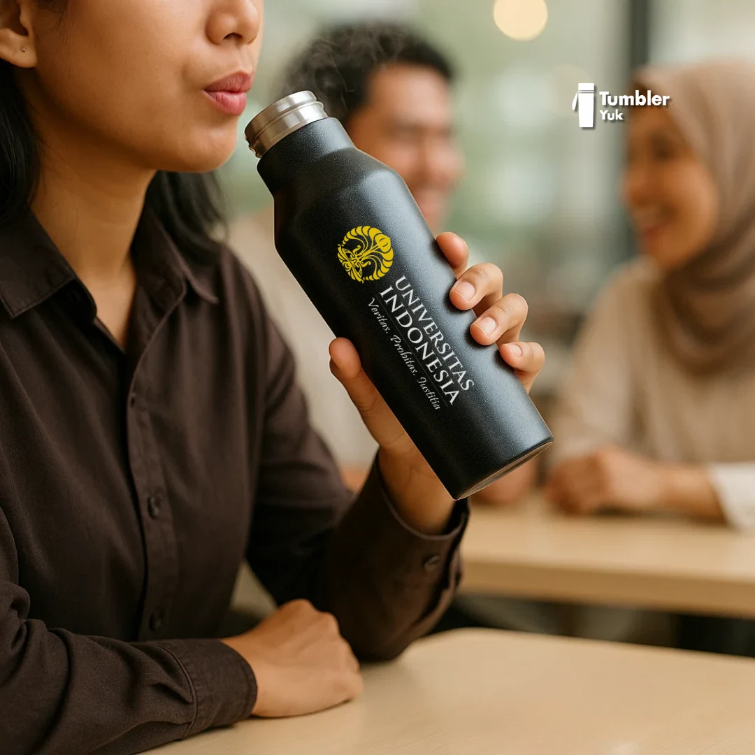 Aksen metal elegan dipadukan UV print presisi menjaga integritas logo/warna brand. Tepat untuk client gift yang pantas diserahkan dan konsisten saat didokumentasikan. Memberi kesan berkelas tanpa terkesan pamer.